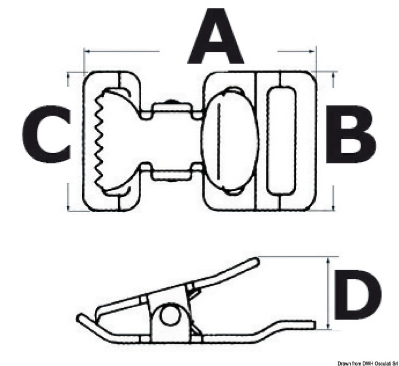 Do naprężania taśm regulacyjnych łodzi pomocniczych, z blokadą sprężynową.