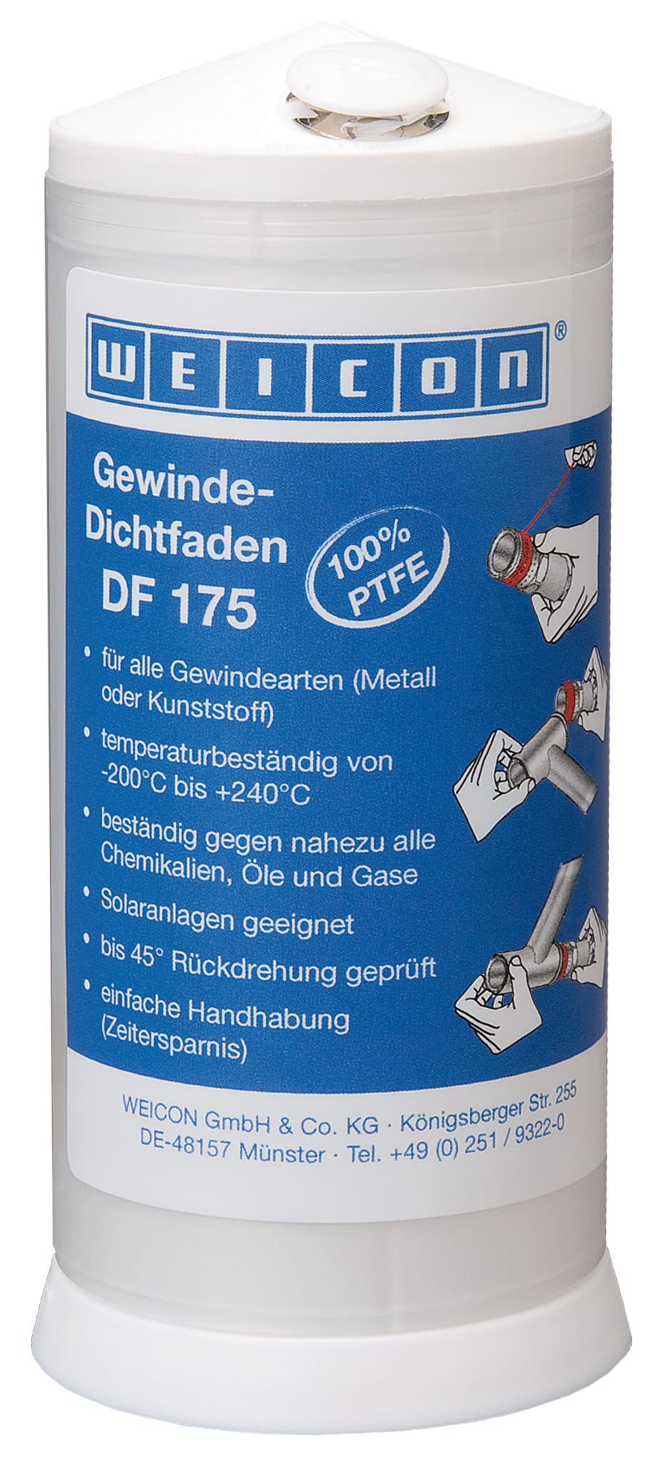 WEICON DF 175 to opatentowana nić uszczelniająca gwinty wykonana w 100% z PTFE. Trwale i bezpiecznie uszczelnia prawie wszystkie gwinty metalowe i plastikowe.