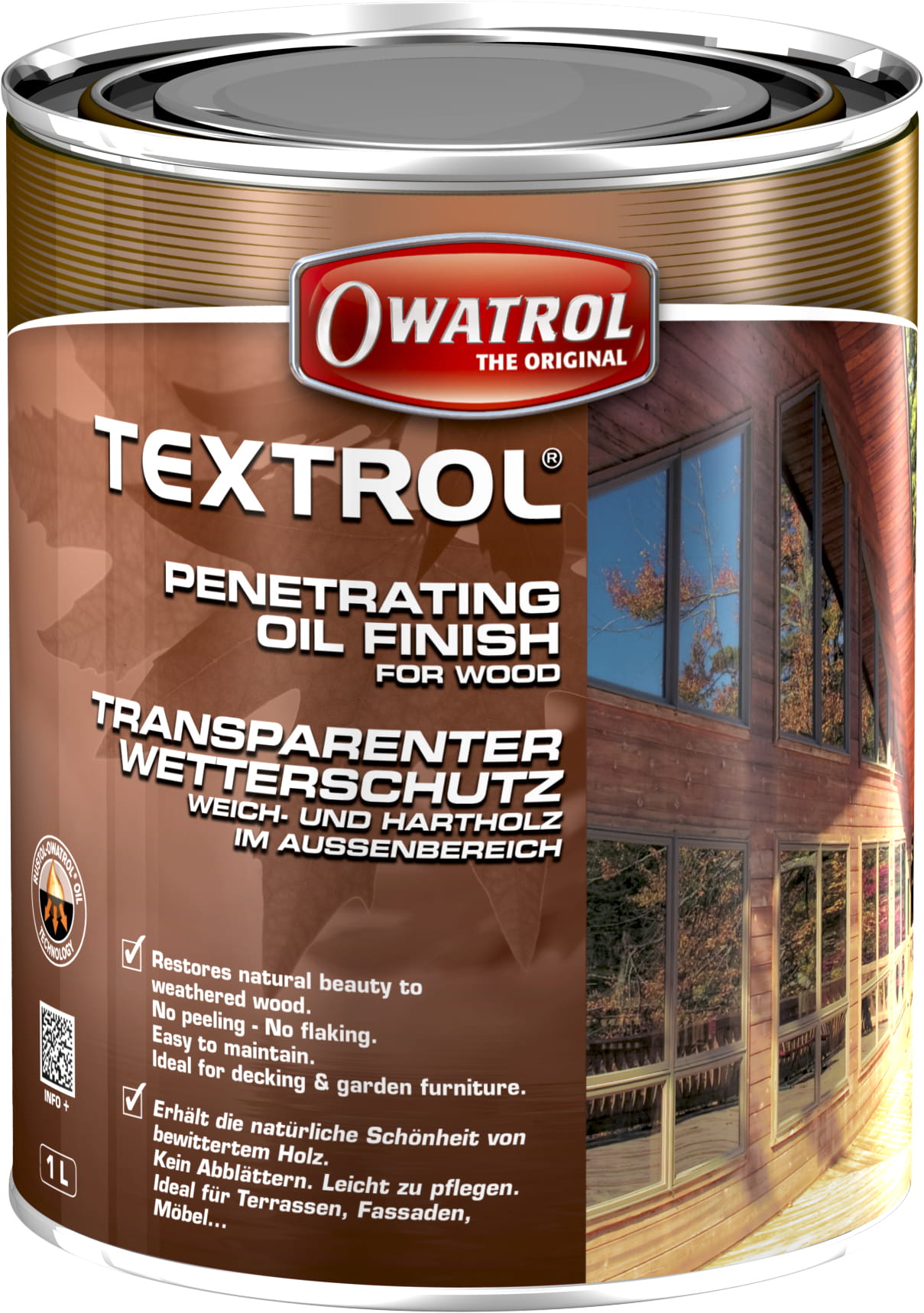 Owatrol Textrol to schnący na powietrzu naturalny olej o bardzo wysokich właściwościach penetracyjnych. Chroni drewno narażone na działanie czynników atmosferycznych od wewnątrz i nie tworzy filmu. Minimalizuje to przyszłe koszty opieki.