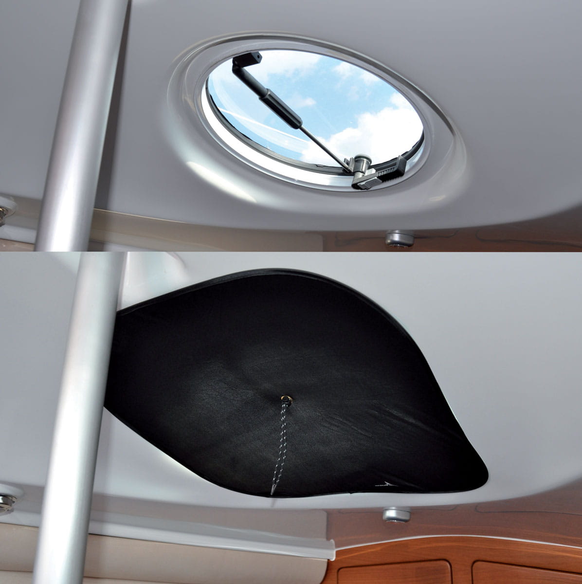 Uniwersalne dopasowanie dzięki prostym mocowaniom na przyssawki z regulowanymi sznurkami do mocowania nawet przy otwartych włazach.