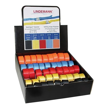 Kolorowe paski napinające z ocynkowaną klamrą zaciskową i taśmą poliestrową 25 mm.