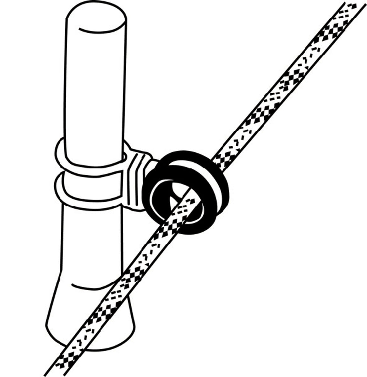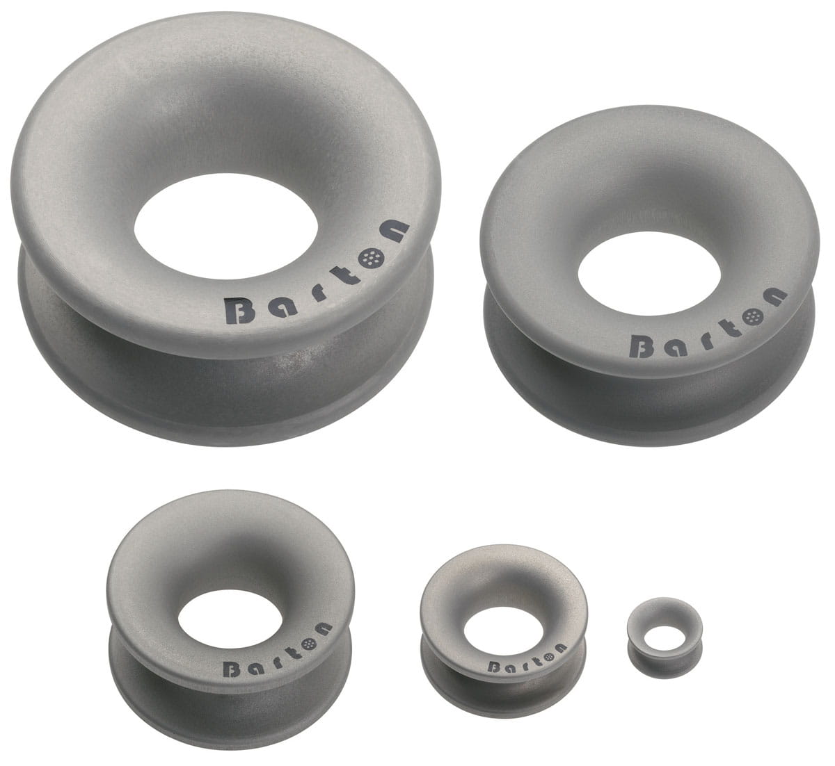 Nowoczesne liny Dyneema charakteryzują się wysoką odpornością na ścieranie i tak niskim współczynnikiem tarcia, że zamiast bloczków można stosować proste pierścienie. Uchwyty Barton High Load Eyes wykonane z anodowanego na twardo aluminium „Spectro” mają stały promień bez krawędzi, dzięki czemu możliwe są również odchylenia o 180°.