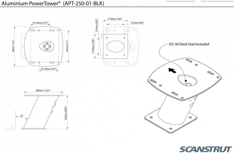 APT-250-01-BLK Podstawa aluminiowa PowerTower 10" dla anten radaru, czarna