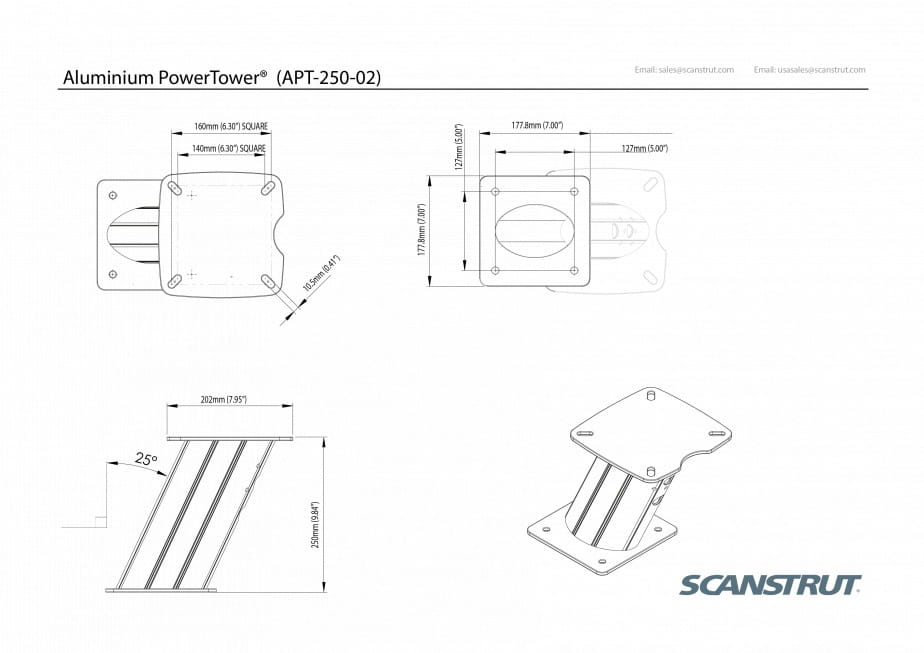 Ma wysokość 250 mm (6 cali) i jest wykonana z najlepszego aluminium morskiego, zaprojektowana tak, aby pasować do najnowocześniejszych radarów firmy Furuno.