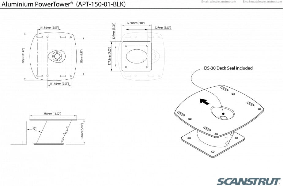 APT-150-01-BLK Podstawa aluminiowa PowerTower 6" dla anten Raymarine 2kW / 4kW, czarna
