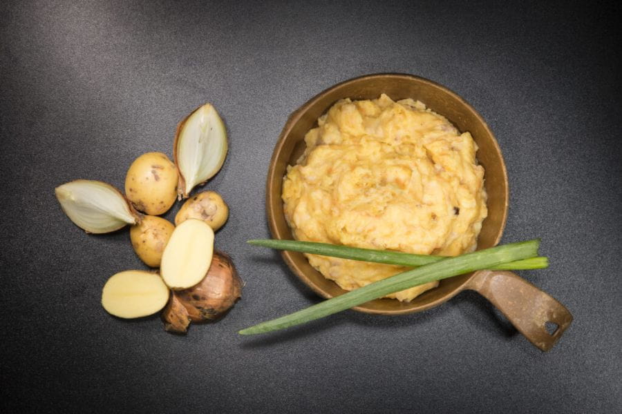 ZIEMNIAKI Z BOCZKIEM: ziemniaki (66%), boczek wędzony (20%), mleko, cebula, marchew, sól