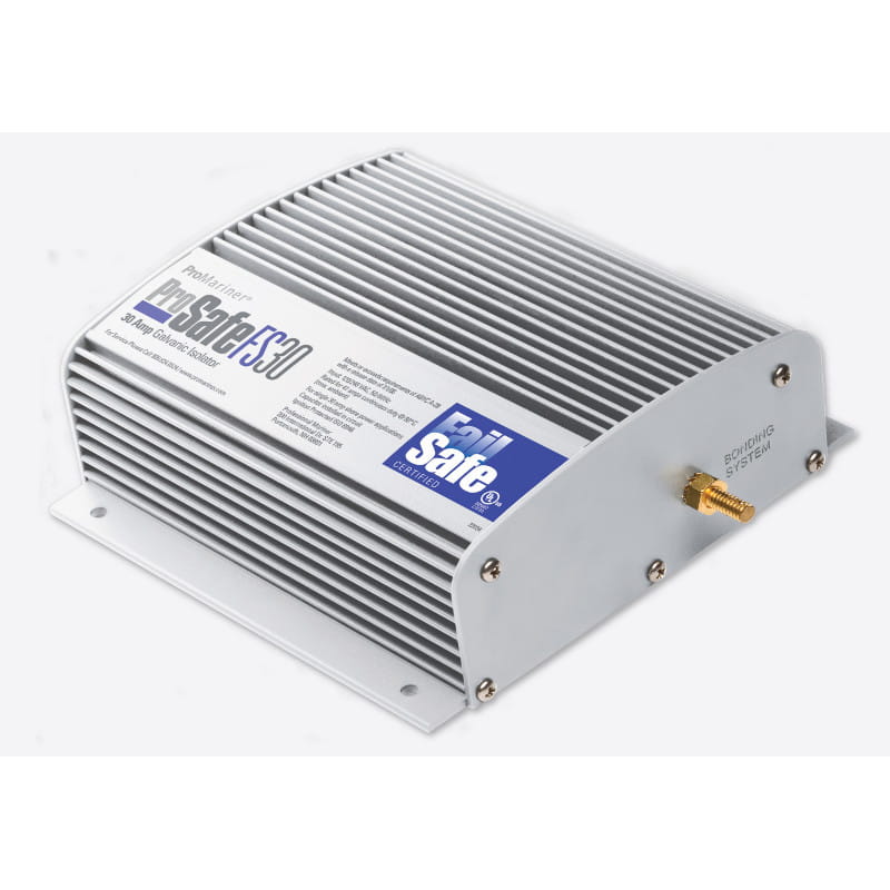 Izolator galwaniczny ProSafe FailSafe 30 Amp przerwie galwaniczny przepływ prądu z innymi jachtami w marinie, gdy zostanie zainstalowany na jachcie, który podłączony jest do zasilania AC z lądu. Technologia ta utrzymuje bezpieczne uziemienie AC i rozwiązuje najbardziej powszechne formy korozji i przedwczesnej utraty cynku wewnątrz systemu wiążącego jachty. Seria ProSafe FS posiada certyfikat UL dla spełnienia parametrów rekomendacji ABYC A-28. ProSafe FS jest łatwe w instalacji i nie wymaga dedykowanego monitora do weryfikacji stanu pracy izolatora galwanicznego, jak to jest wymagane w przypadku izolatorów galwanicznych bez certyfikatu FailSafe. ProSafe 30 Amp zbudowany jest na wytrzymałej platformie Flat Pack Semiconductor, co zapewnia, że w przypadku awarii, będzie bezpiecznie bez kompromitacji stałości uziemienia na pokładzie, w czasie podłączenia do zasilania AC z lądu.