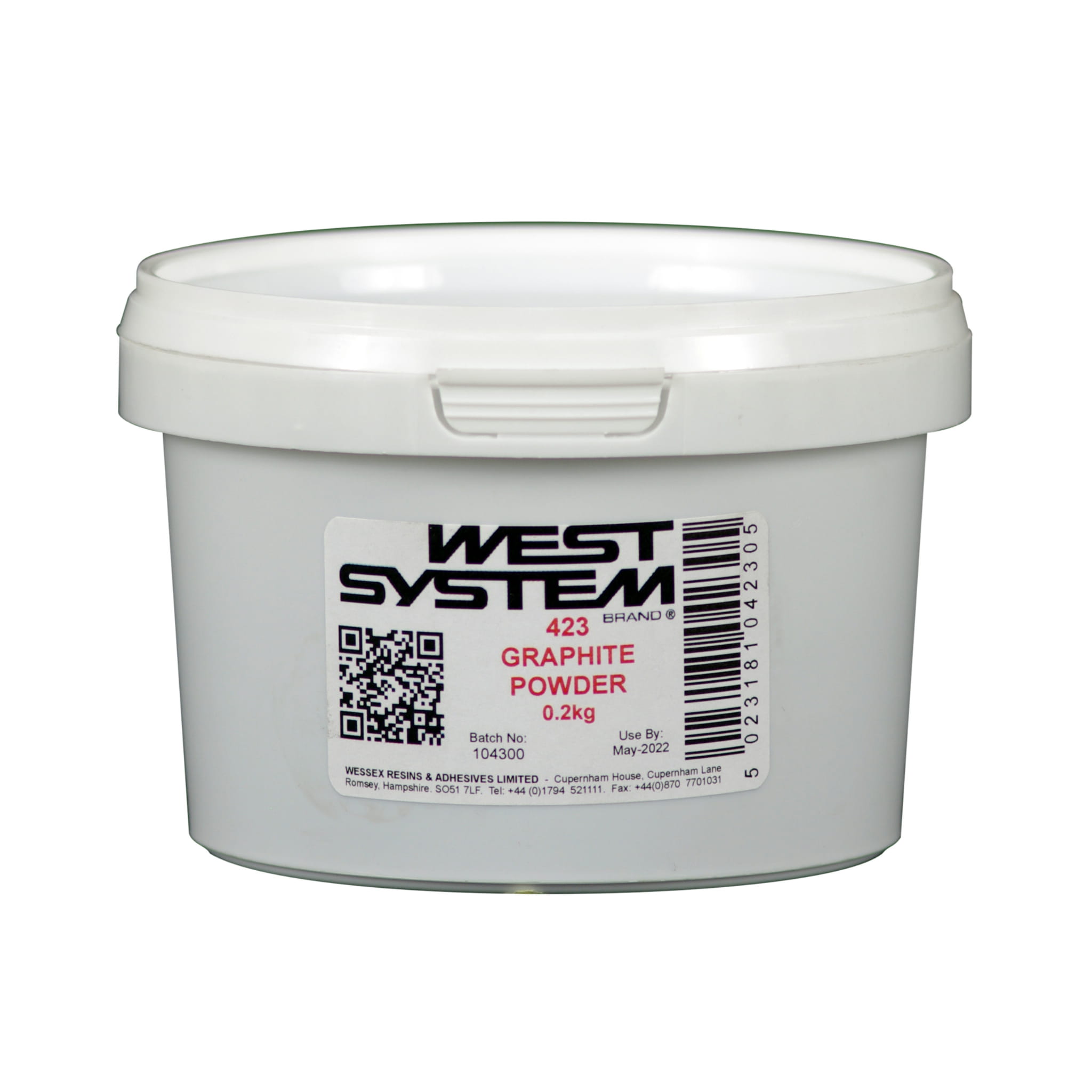 Dodatek grafitowy West System 423 to drobny czarny proszek, który w połączeniu z żywicą West System tworzy powłokę o niskim współczynniku tarcia i wysokiej odporności na zarysowania. Zalecany dodatek to około 10% objętościowo do żywicy. Mieszanka epoksydowo-grafitowa idealnie sprawdza się jako powłoka ochronna na dna jachtów regatowych, płetwy sterowe i miecze, a także do wypełniania fug w pokładach tekowych, nadając im trwałość i tradycyjny wygląd.