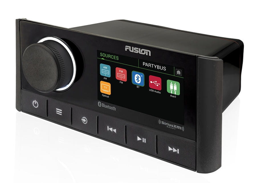 Konfigurowanie profili DSP jest proste dzięki bezpłatnej aplikacji Fusion-Link lub dostosowywalnej aplikacji Fusion-Link na PC dla producentów łodzi OEM. Za pomocą zaledwie kilku kliknięć możesz raz skonfigurować wstępnie skonfigurowany profil DSP i powrócić do cieszenia się tym, co kochasz na wodzie, jednocześnie słuchając wysokiej jakości dźwięku dostosowanego do twoich uszu i środowiska. - PartyBus: Ciesz się swobodą wyboru muzyki dzięki serii Apollo i Fusion-PartyBus™. Moc PartyBus zaczyna się, gdy dodasz więcej zestawów stereo obsługujących PartyBus do swojego systemu rozrywki. Każde dodatkowe stereo z włączoną funkcją PartyBus daje możliwość dołączenia do trybu imprezy (Party Mode) i odtwarzania tego samego idealnie zsynchronizowanego źródła dźwięku na całym jachcie. Włącz tryb osobisty (Personal Mode) i słuchaj dostępnych źródeł audio ze swojego stereo w wybranym obszarze bez zakłócania trybu imprezy w innych obszarach jachtu.