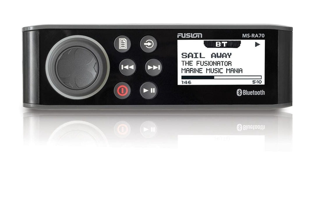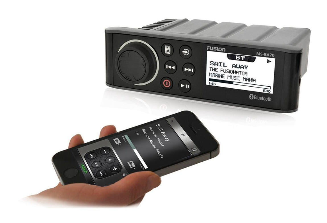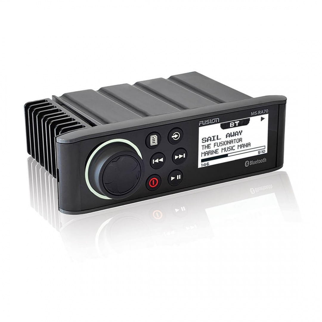 MS-RA70 to najbardziej "dopieszczony" morski system stereo FUSION, przeznaczony do dostarczania jakości dla rozrywki na wodzie poprzez zastosowanie kilku najnowszych technologii morskich. Zaprojektowany by płynnie zastąpić dowolny standardowych rozmiarów DIN niemorski system stereo bez potrzeby rekonfiguracji przestrzeni montażowej. Dzięki sprytnej stylizacji instalator dostaje opcję albo montażu sprzętu stereo z konwencjonalnym wykończeniem liniowym lub opcje integracji ze szklaną sterownią na płaskiej powierzchni montażowej, co zapewnia instalację typu "high-end".