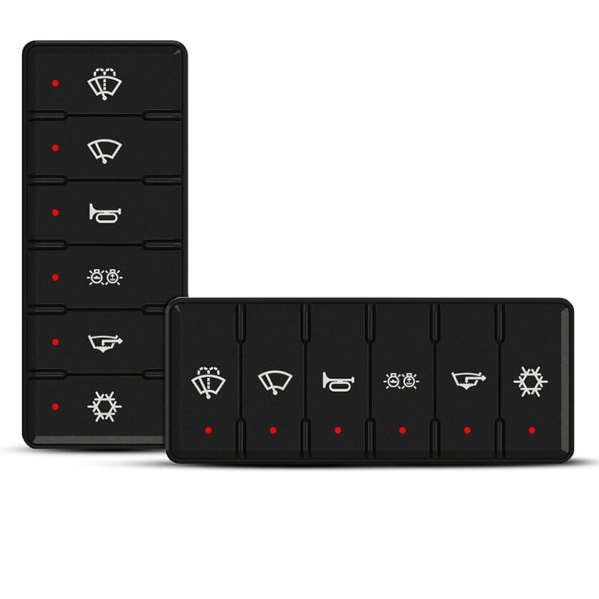 Moduł klawiatury przełączającej Empirbus RMK-6 do przełączania cyfrowego. 6 podświetlanych przełączników z 20 różnymi obrazami. Klawiaturę można ustawić zarówno poziomo, jak i pionowo. Wykorzystuje sieć SeaTalkng/NMEA2000.