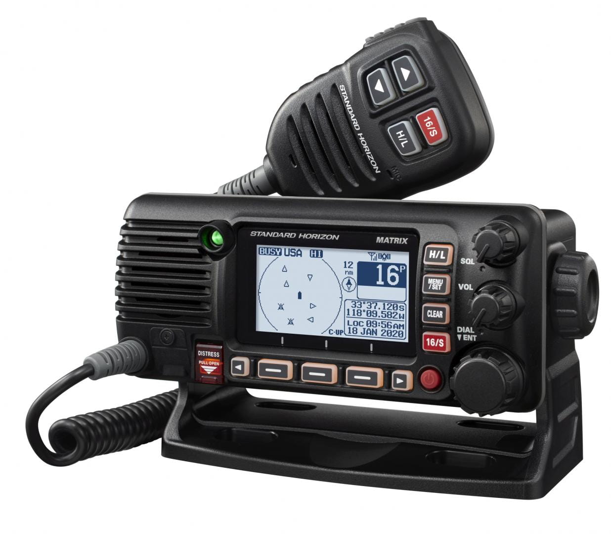 Profesjonalny radiotelefon morski z NMEA 2000, wbudowanym 66-kanałowym odbiornikiem GPS oraz zintegrowanym dwukanałowym odbiornikiem AIS (Automated Identification System).