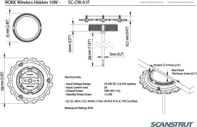 SC-CW-01F Ładowarka indukcyjna wodoodporna 10W 12/24V montaż pod powierzchnią