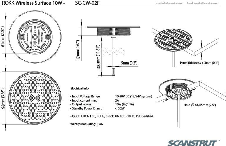 SC-CW-02F Ładowarka indukcyjna wodoodporna 10W, 12/24V montowana na powierzchni