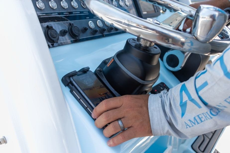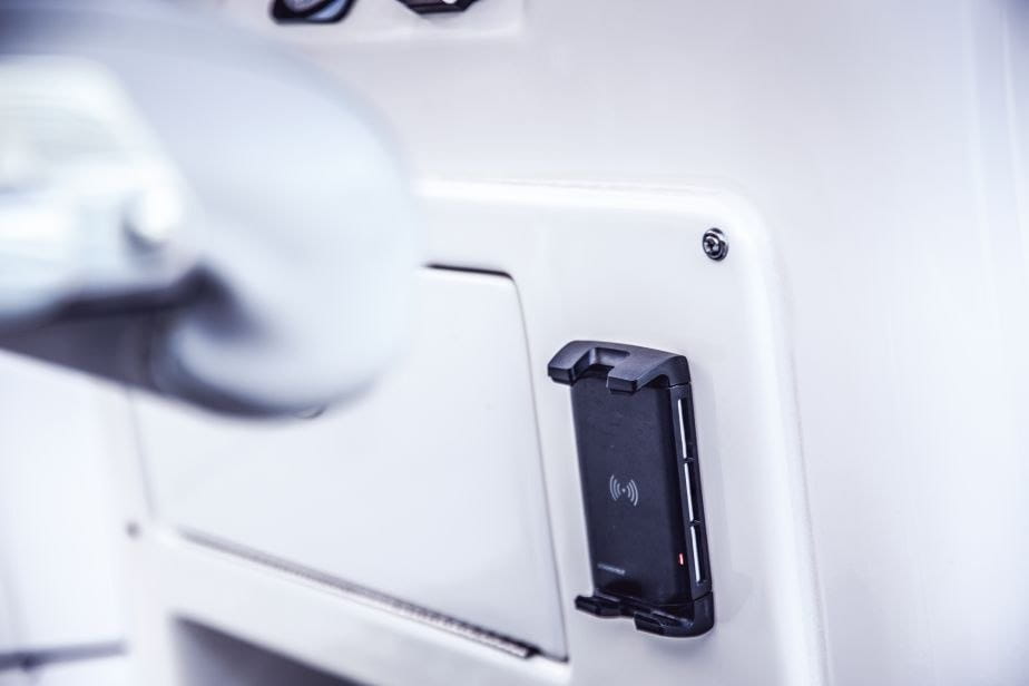 Doskonała na jachtowe konsolety lub na wszelkie pojazdy pracujące na zewnątrz w narażeniu na żywioły, łatwa obsługa jedną ręką pozwala na łatwe zadokowanie telefonu i ciągłe rozpoczęcie ładowania. Bez potrzeby przeprowadzania połączenia.