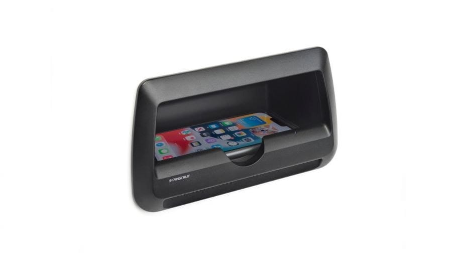 Sprytna konstrukcja zmniejsza głębokość instalacji, przechowując i ładując bezprzewodowo telefon z boku. Idealny do integracji z konsolami, grodziami, siedzeniami, szafkami i nie tylko! Po prostu wsuń telefon do kieszeni i natychmiast rozpocznij bezprzewodowe ładowanie.