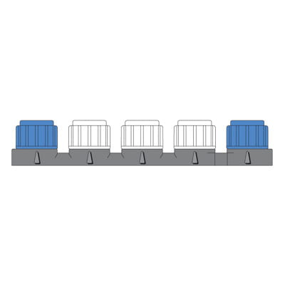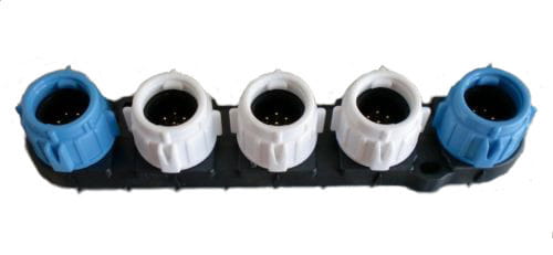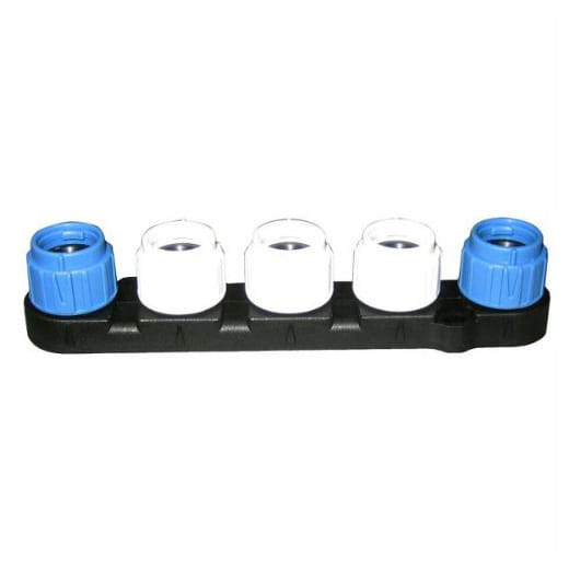 Złącze SeaTalk NG 5-Way tworzy do 3 białych połączeń bocznych w jednym miejscu, umożliwiając podłączenie urządzeń SeaTalk NG do magistrali. Dwa niebieskie porty łączą się z kablami magistralnymi, umożliwiając przepływ sieci do innych lokalizacji na łodzi lub akceptując terminatory sieciowe w celu zamknięcia obwodu.
