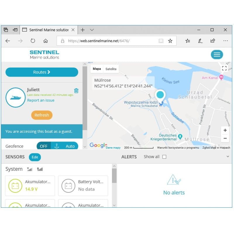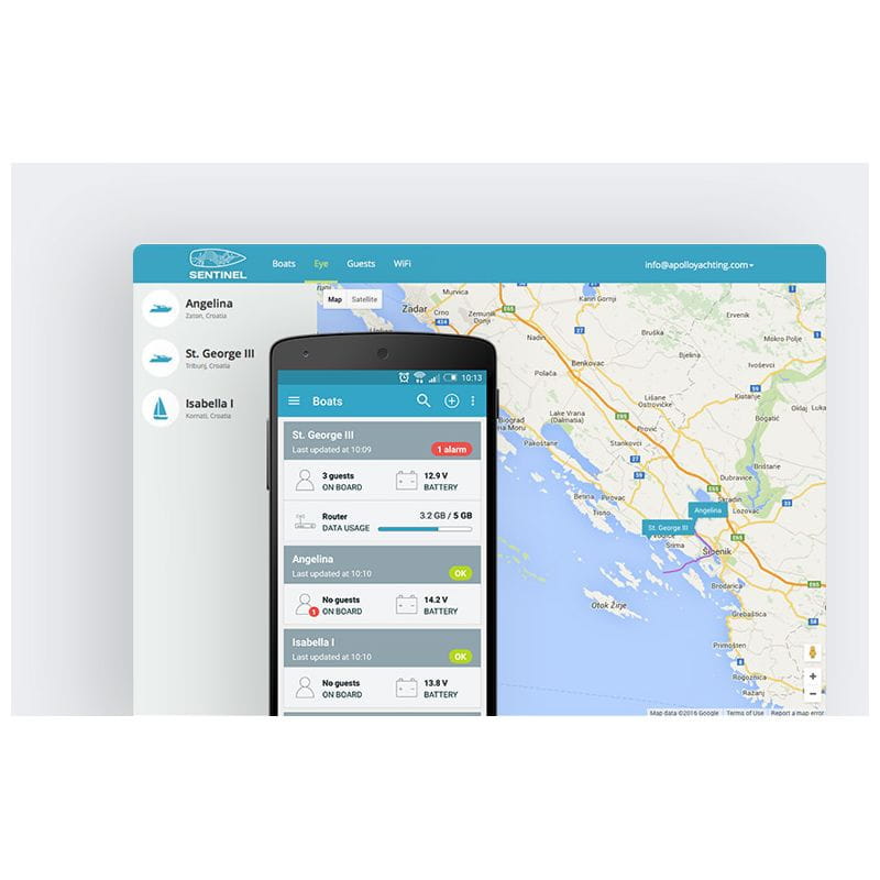 Najbardziej zaawansowany, wszechstronny system zdalnego monitorowania jachtu. Pozycja, ważne parametry jak napięcie akumulatorów czy ładowanie, alarmy.