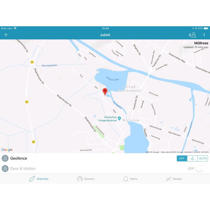 - wbudowany moduł SIM przesyła na bieżąco dane do serwera systemu