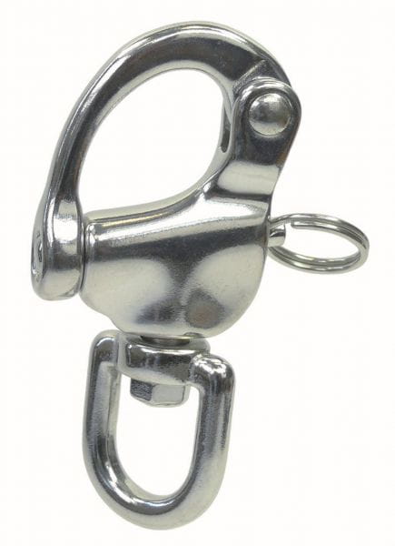 Szekla zatrzaskowa z obrotowym oczkiem wykonana jest ze stali nierdzewnej AISI 316.