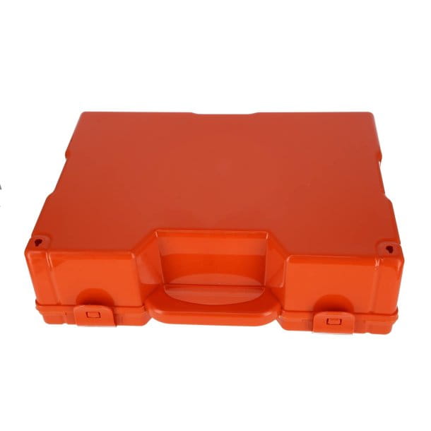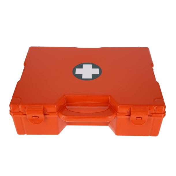 Skład: Gaza sterylna 5 x 5 cm 10x, Gaza sterylna 10 x 10 cm, opakowanie 25 szt. 3x, Wkładka hemostatyczna szeroka 1x, Pasek Crepe 4m x 10 cm 1x, Pasek samoprzylepny 4m x 10 cm 1x, Pasek z gazy 3,5m x 10 cm 3x, Gruby bandaż bawełniany 15/10 4m x 5 cm 2x, Gruby bandaż bawełniany 15/10 4m x 7 cm 1x, Rolka plastra 2,5 m x 5 cm 2x, Sterylny tłusty tiul 10 x 10 cm 3x, Opatrunek samoprzylepny 10 x 6 cm 8x, Wielokrotny opatrunek samoprzylepny 20x, Saszetka z chlorheksydyną 10x, Żel na oparzenia 3,5 g 3x, Ręcznik amoniakowy 3 ml 5x, Butelka antyseptyczna 125 ml 1x, Butelka nadtlenku wodoru 250 ml 1x, Saszetka z lodem błyskawicznym 2x, Para sterylnych rękawic 5x, Bawełna 125 gr 1x, opaska uciskowa nitrylowa 1x, szyna na złamanie 22 cm 2x, para nożyczek listerowych 1x, koc ratunkowy 1x, sterylne kleszcze 1x, termometr cyfrowy 1x, instrukcja w wielu językach 1x.