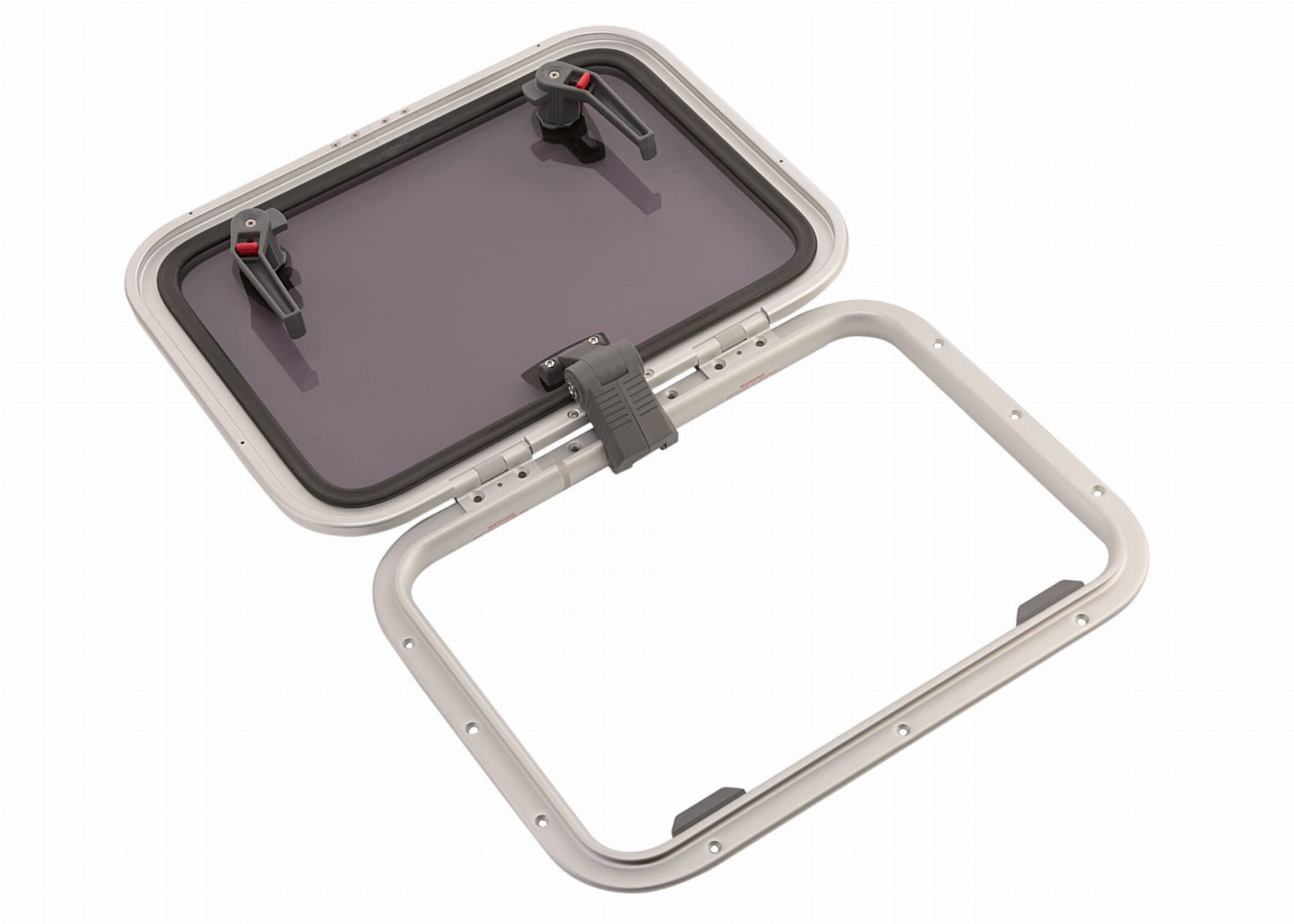 Właz posiada unikalny system uszczelnień Lewmar i umożliwia łatwą wymianę panelu akrylowego.