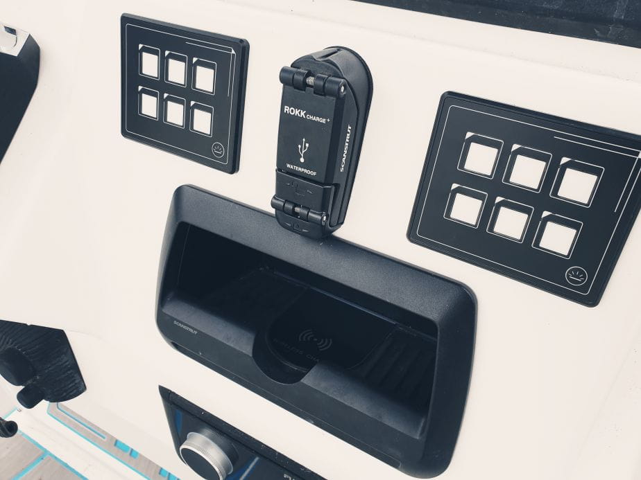 Zaokrąglone rogi i zwężająca się przednia konstrukcja eliminują wszelkie ryzyko zaczepienia, umożliwiając instalację w miejscach o dużym natężeniu ruchu na jachcie, gdzie ładowanie/przechowywanie telefonu do tej pory było niemożliwe.