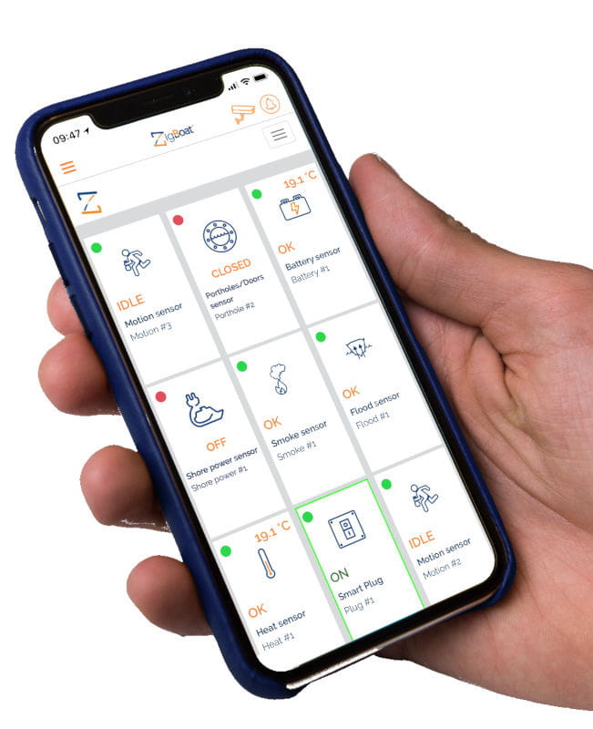 ZigBoat™ to innowacyjny system bezprzewodowy umożliwiający monitorowanie i łączenie się z własną łodzią w trybie zdalnym lub lokalnym, a tym samym gwarantujący bezpieczeństwo i komfort. Dzięki zastosowaniu najnowszych technologii bezprzewodowych ZigBee i WiFi, a przede wszystkim łączności bezpośredniej z czujnikami pokładowymi, bez konieczności zastosowania technologii cloud.Wysyła w czasie rzeczywistym powiadomienia push, w przypadku wystąpienia zdarzeń krytycznych. Ponadto zastosowanie aplikacji ZigBoat™ umożliwia kontrolowanie w dowolnej chwili informacji dotyczących Twojej łodzi.