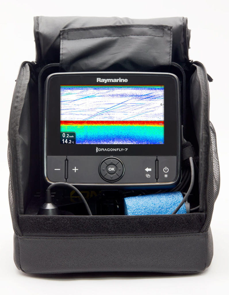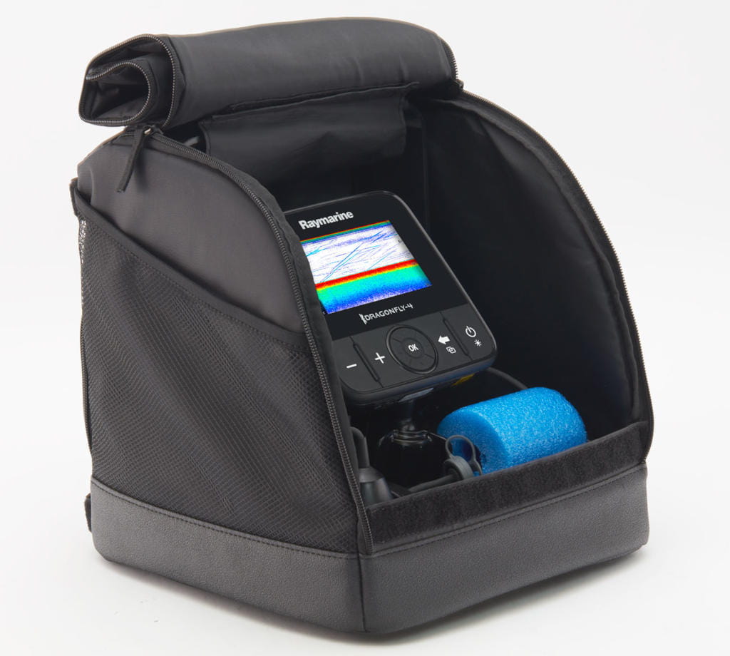 Przekształć swoją echosondę Raymarine Dragonfly w kompletną maszynę do łowienia pod lodem. Zestaw Raymarine Ice Fishing Kit zawiera wszystko, czego potrzebują wędkarze łowiący w zimną pogodę, by uwolnić potęgę sonaru Dragonfly pod lodem. Dzięki wodoodpornej torbie i solidnej podstawie zaprojektowanymi specjalnie dla Dragonfly, ten przenośny zestaw został zbudowany tak, by przetrwać żywioł. Zestaw Ice Fishing Kit zawiera ładowalną baterię, ładowarkę i wysokiej częstotliwości przetwornik CHIRP CPT-S do łowienia pod lodem (z pływakiem). Pełnowymiarowe kieszenie cargo zapewniają dużo miejsca na przybory, a zintegrowane uchwyty ułatwiają podróżowanie z całym osprzętem. Ice Fishing Kit frmy Raymarine to prawdziwy przenośny pakiet wędkarski typu all-in-one (wszystko w jednym).