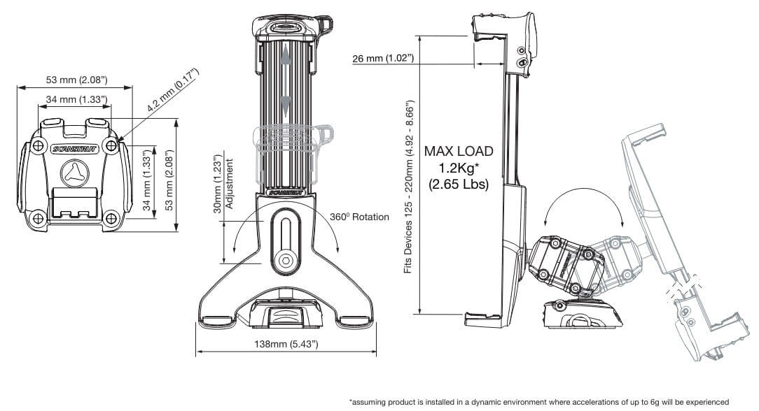 Bezpieczny montaż mini i pełnowymiarowych tabletów dzięki regulowanej grzechotce.