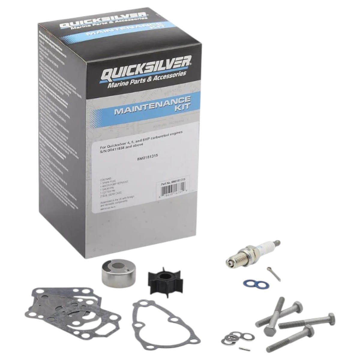 Serwisowy zestaw naprawczy 8M0181315 do silników zaburtowych firmy Quicksilver przeznaczony jest do gaźnikowych silników zaburtowych o mocy 4,5 i 6 KM.
