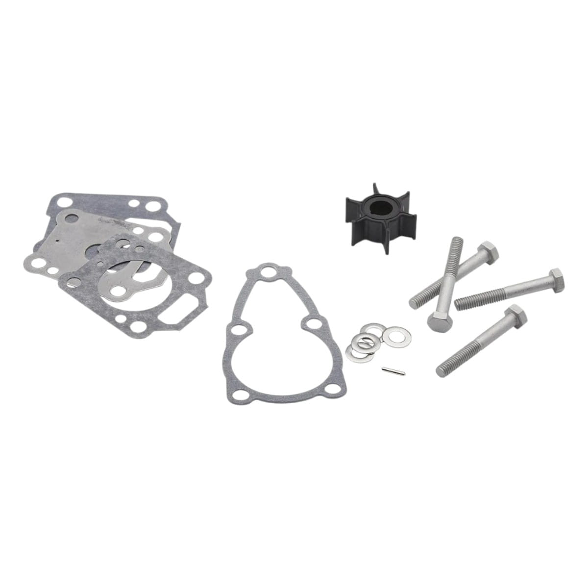 Zawiera świecę zapłonową, wirnik, zestaw naprawczy pompy wody, uszczelki spustu oleju ze skrzyni biegów i zawleczkę zabezpieczającą śmigło.