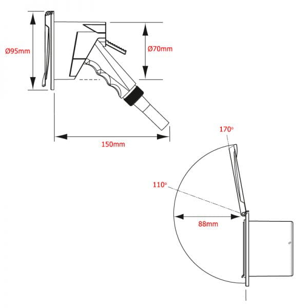 - ? instalacji: 70 mm (na zewnątrz: 95 mm)